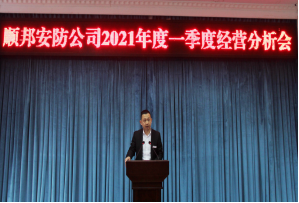 ? ? ? ? 4月6日,順邦安防公司召開2021年第一季度經(jīng)營分析會。會議主要總結了公司一季度經(jīng)營運行情況,研究分析當前形勢,簽訂《2021年度經(jīng)營目標責任書》,安排部署下一步工作。公司黨委書記、執(zhí)行董事、總經(jīng)理唐清華主持會議。